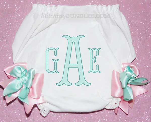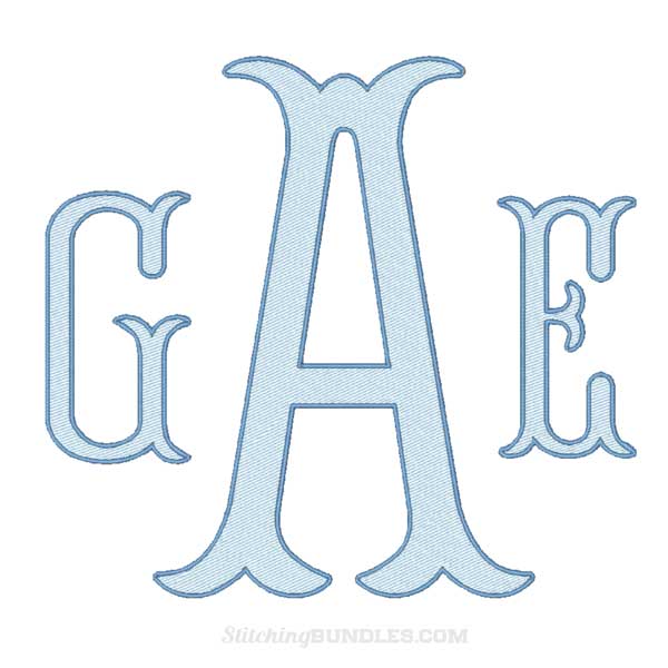 Fishtail Monogram Embroidery 2 Color Embroidery machine Fonts fill stitch with a satin outline 6 sizes 11 formats including BX vintage