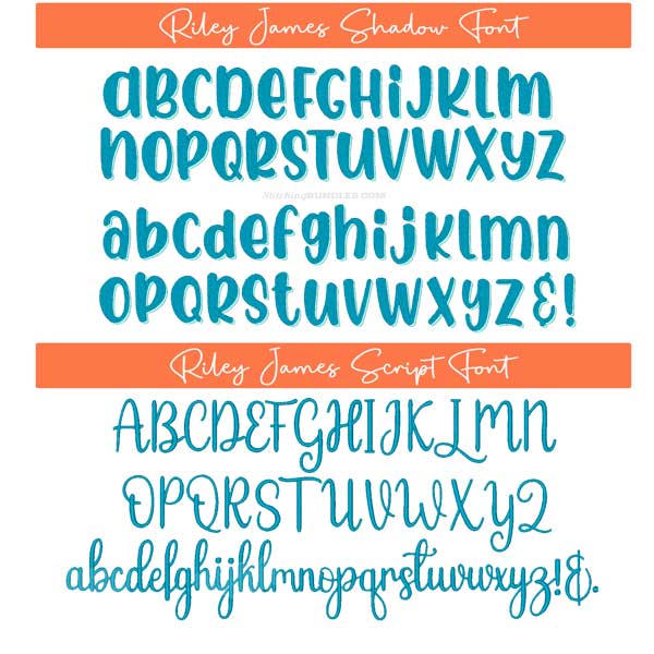 Riley James Duo Embroidery Font Machine Designs BX Monogram – 2 Fonts Style Shadow and Script 6 sizes each 654 file Cursive letter set